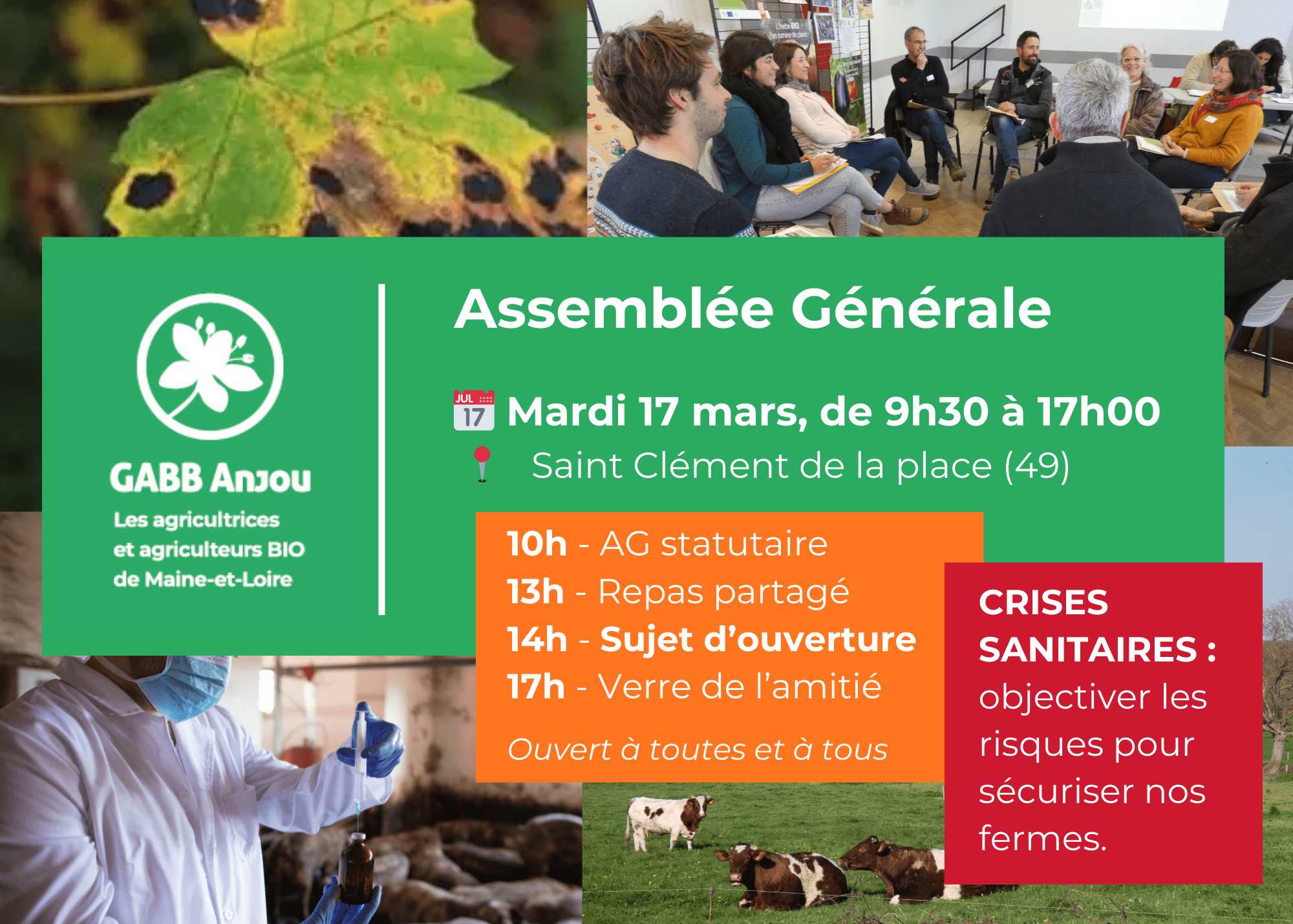 Toute l’équipe du GABB Anjou vous donne rendez-vous le mardi 17 mars, de 9h30 à 17h, à la salle Hugues Aufray, à Saint Clément de la place, pour sa traditionnelle assemblée générale. Ne ratez pas ce moment fédérateur.